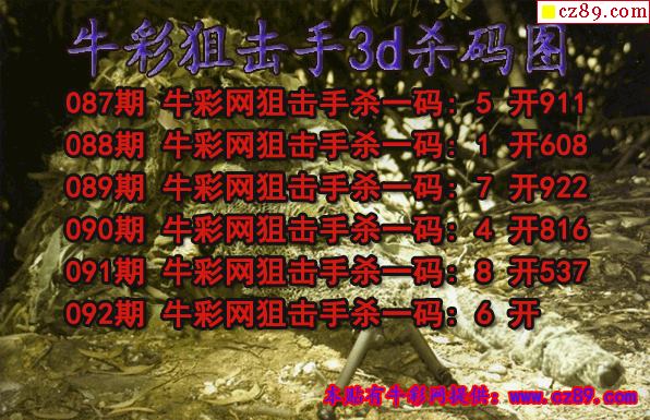 牛彩狙击手杀码2026092期3d图谜(原创)-3d试机号走势图_今天3d试机号金码_3d和值走势带连线|杀号走势