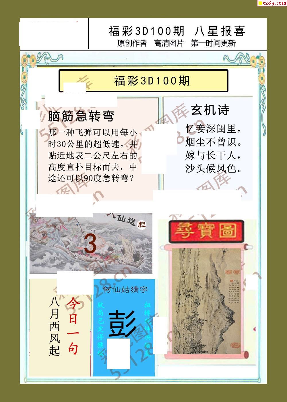 首页 > 福彩3D图谜 > 八星报喜26年100期福彩3d画谜