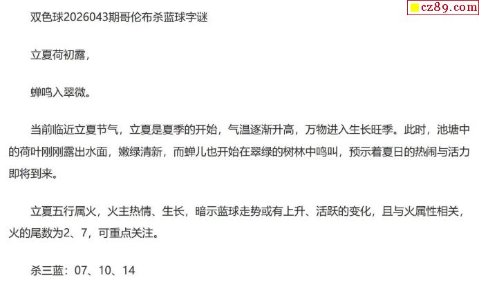 26年福彩双色球043期 哥伦布一句杀蓝球字谜