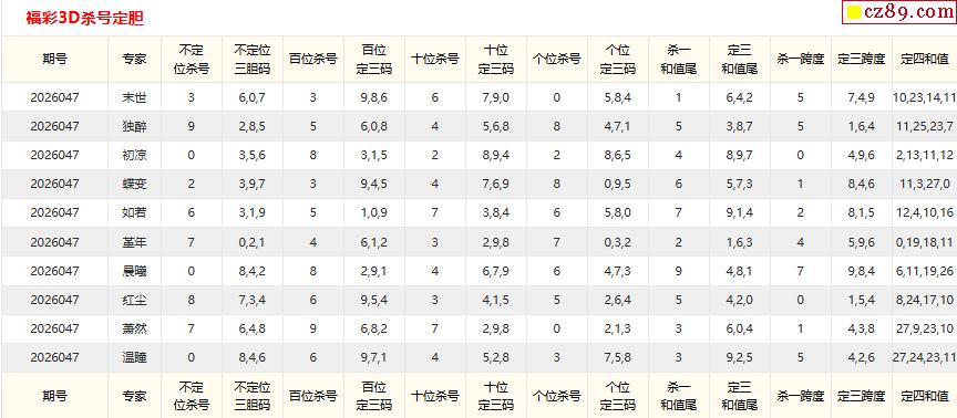 首页 > 福彩3D预测 > 26年047期彩宝贝专家福彩3D杀号定码图表