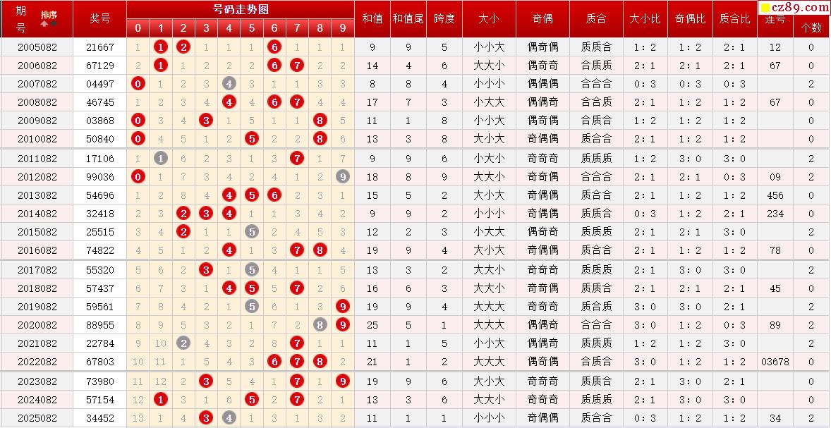 第082期体彩P3历史同期对比
