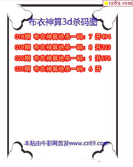 首页 > 福彩3D图谜 > 布衣神算杀码2026021期3d图谜(原创)