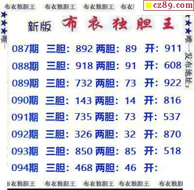 新版布衣独胆王2026094期3d图谜