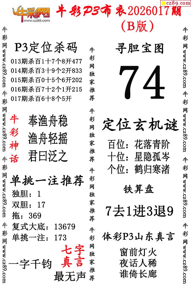 牛彩P3布衣26年017期AB版图谜(精华版)