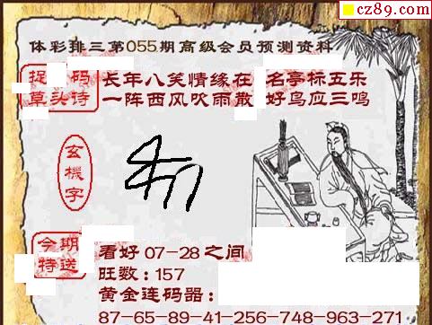 体彩P3055期 5188图谜(2026特一级会员版)-3d试机号走势图_今天3d试机号金码_3d和值走势带连线|杀号走势