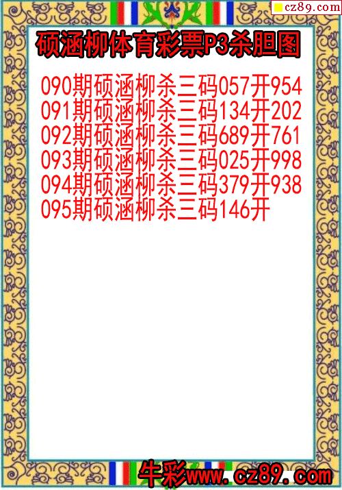 26年095期硕涵柳体育彩票P3杀胆图