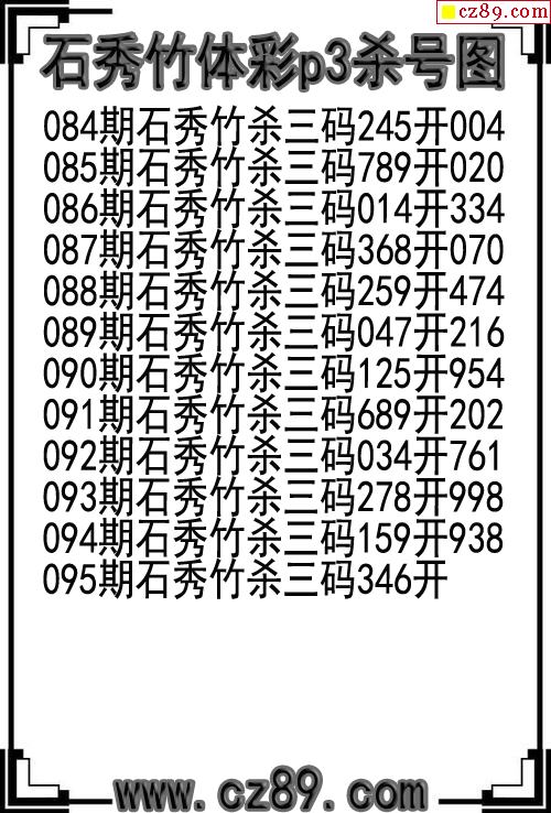 26年095期石秀竹体彩p3杀号图
