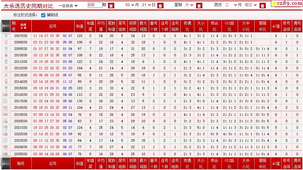030期大乐透历史同期对比图