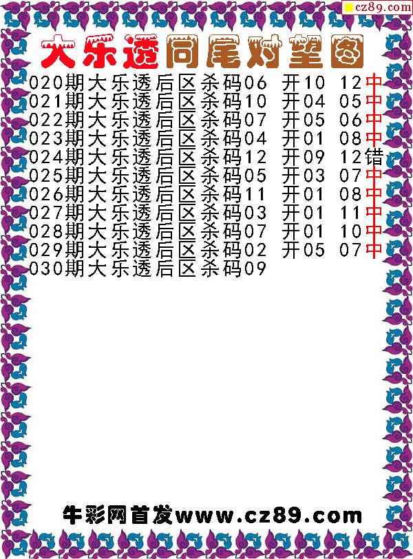 大乐透2026030期同尾对望后区杀号图谜 10中9